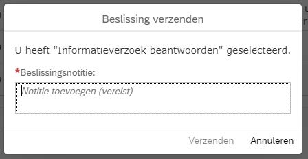 Je kan het informatieverzoek beantwoorden door op de betreffende knop te klikken. Wanneer je dat hebt gedaan verschijnt het volgende scherm: