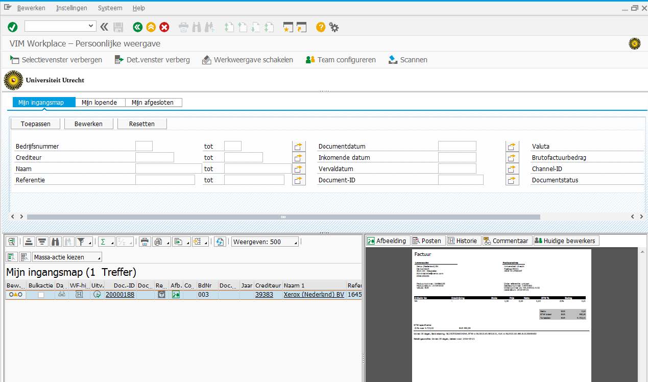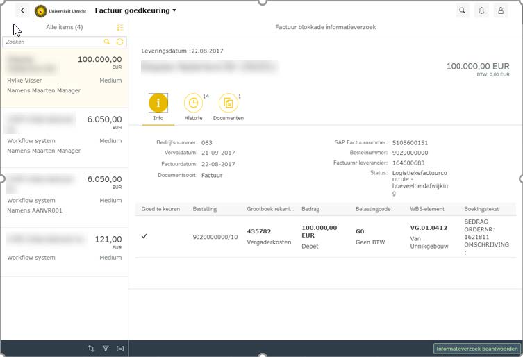 Voor het goedkeuren van facturen maakt de UU gebruik van SIM – Sap Invoice