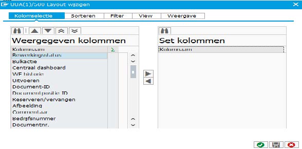 Boven de tekst ‘Mijn ingangsmap’ is een werkbalk waar je bijvoorbeeld een filter in kan stellen, printen enz. Hier kan je ook een eigen lay-out maken en opslaan. Dat kan via het knopje: